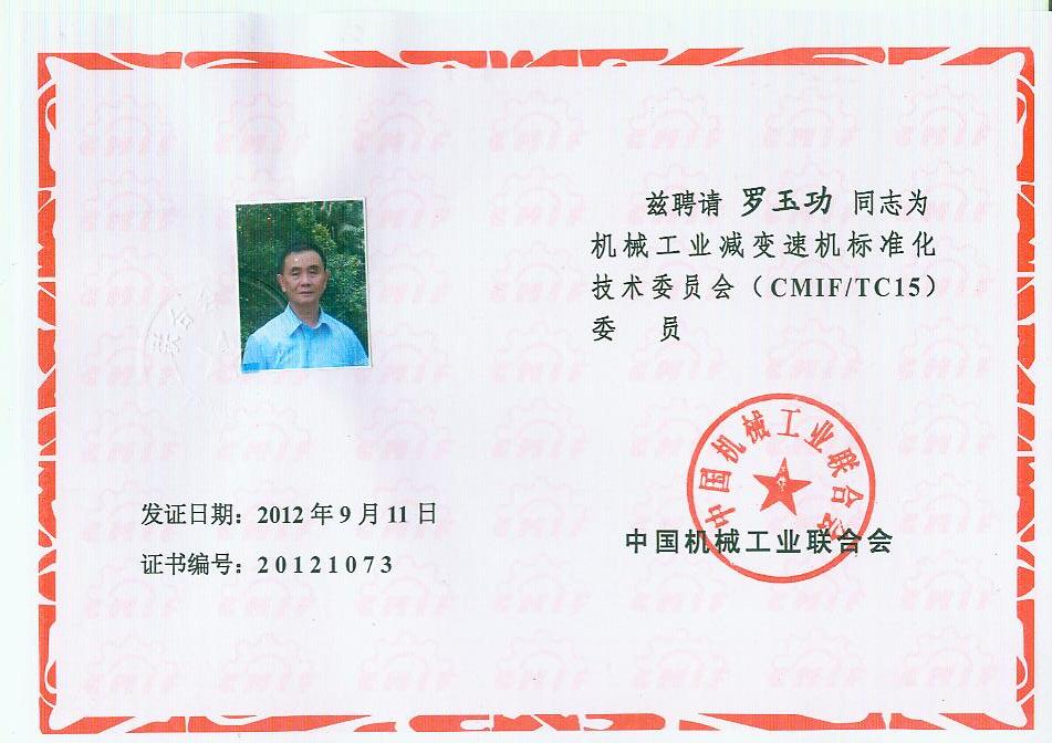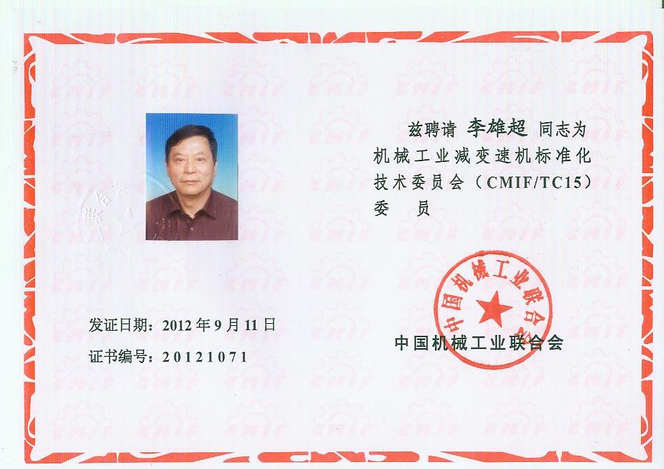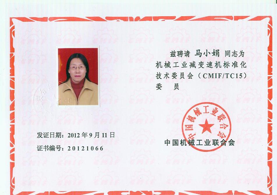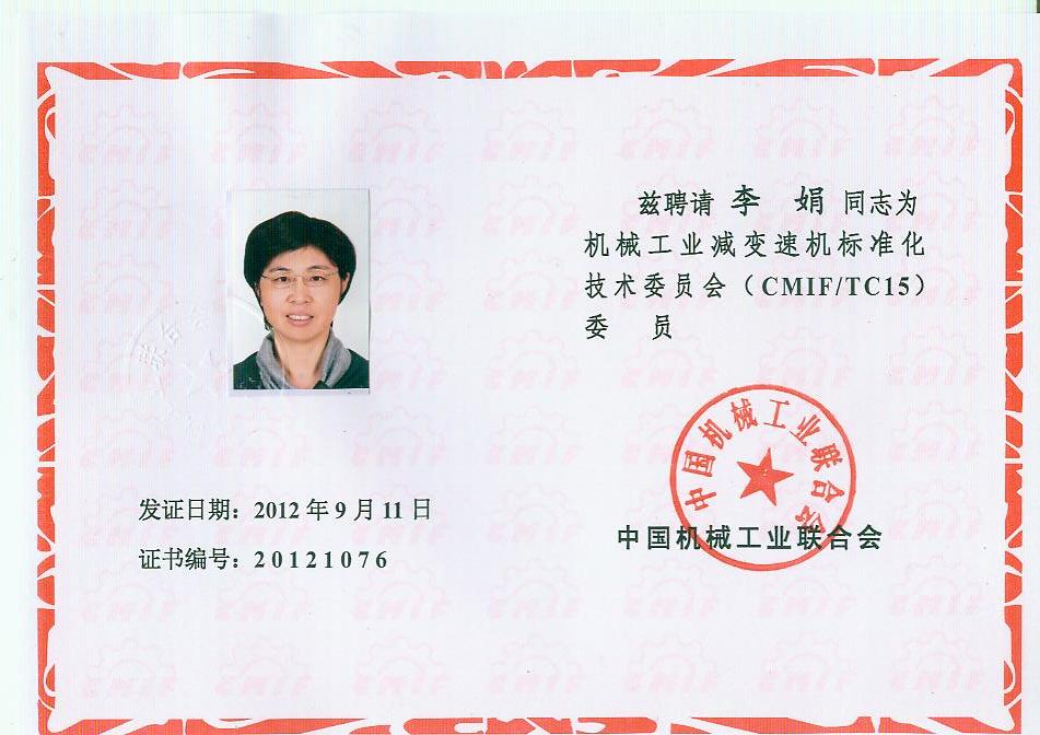 你會《關(guān)于報送機械工業(yè)減變速機標準化技術(shù)委員會(第二屆)換屆文件的函》(機減標委秘字[2012]08號)收悉。經(jīng)研究,同意機械工業(yè)減變速機標準化技術(shù)委員會換屆及組成方案。第二屆機械工業(yè)減變速機標準化技術(shù)委員會(CMIF/TC15)由29名委員、1名顧問組成(委員名單見附件),劉雅生任主任委員;王瑜、張謙、王金武、姜耀林任副主任委員;劉志新任委員兼秘書長;周有強任顧問。秘書處設(shè)在天津市石化通用機械研究所。