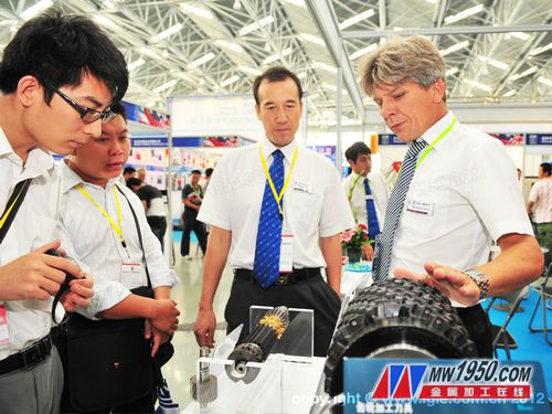 藍(lán)幟 T集團(tuán)FETTE公司技術(shù)人員現(xiàn)場(chǎng)為采購(gòu)商講解齒輪剝削刀具的性能、作用