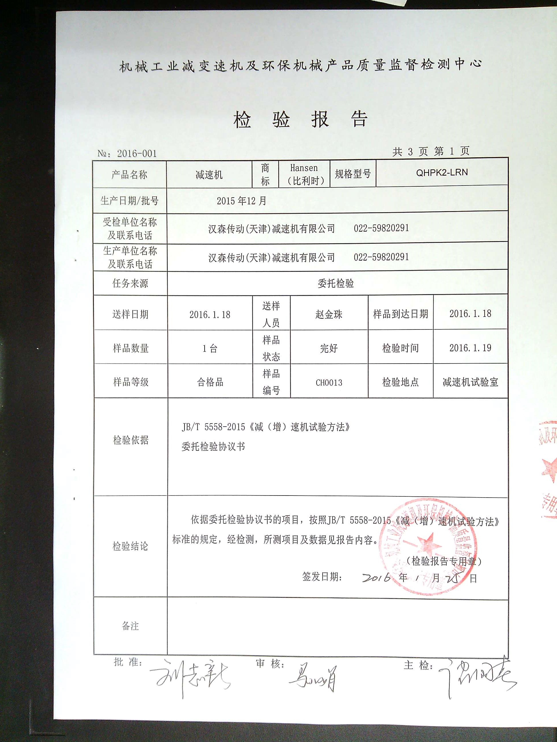 減速機(jī)檢驗(yàn)報(bào)告檢測(cè)報(bào)告